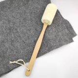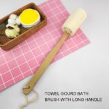 “Reach every inch of your back with ease! This scrubber features a 100% natural, fibrous ridge gourd (Loofah) sponge attached to a sturdy wooden handle. It offers invigorating, all-natural exfoliation to remove dead skin cells, stimulate circulation, and leave your entire body feeling smooth and renewed.”